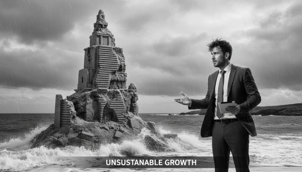 Quantos projetos, quantos milhões, nós jogamos fora perseguindo uma métrica vazia? A obsessão por escalar a todo vapor, sem freio, sem propósito, é um vestígio de uma era que não existe mais. Investidores e C-Levels que ainda flertam com essa máxima estão, na verdade, construindo castelos de areia em terreno movediço. Chega de amadorismo.